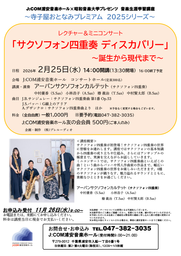J:COM浦安音楽ホール×昭和音楽大学プレゼンツ 音楽生涯学習講座 寺子屋おとなみプレミアム 2025シリーズ